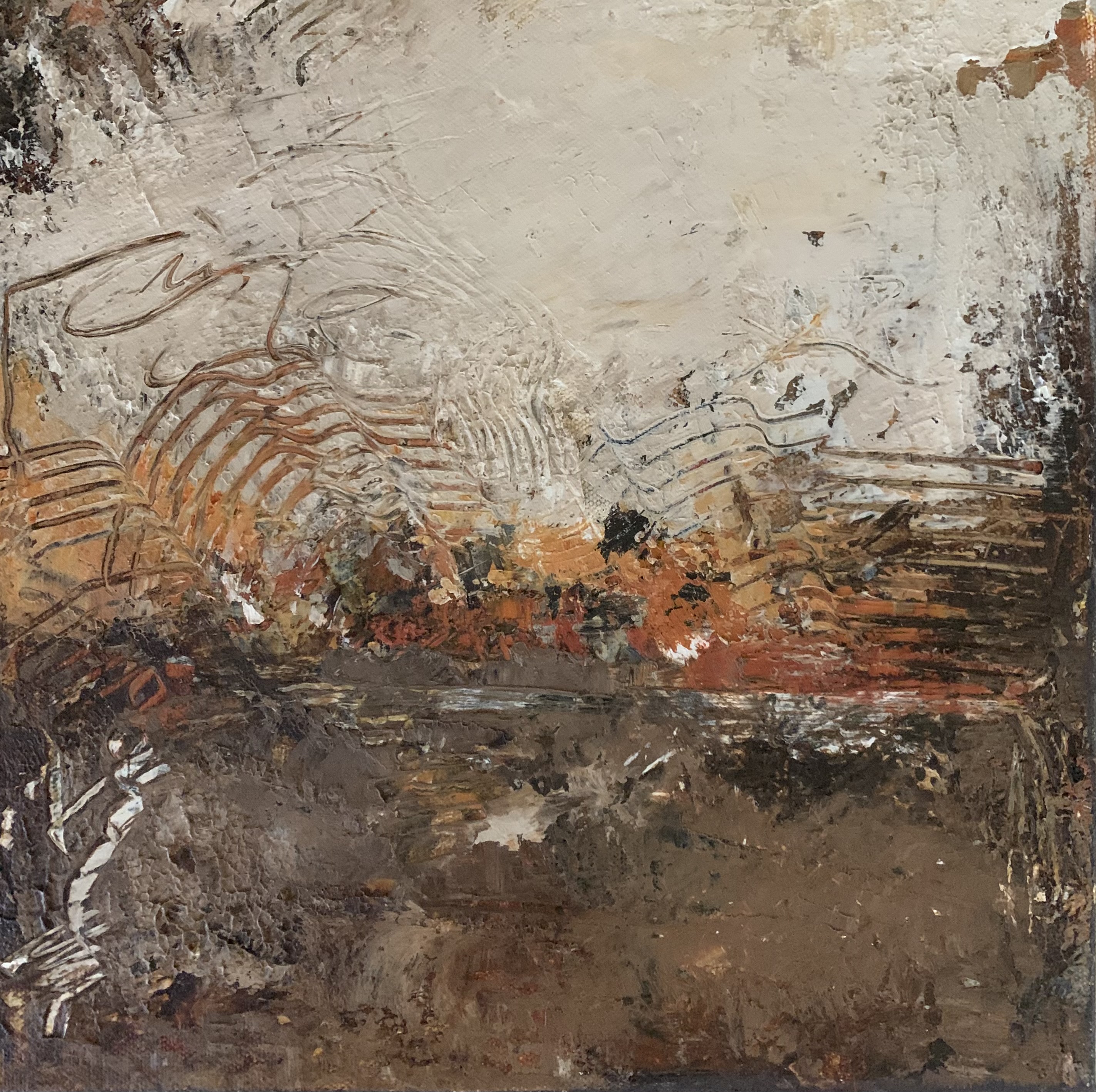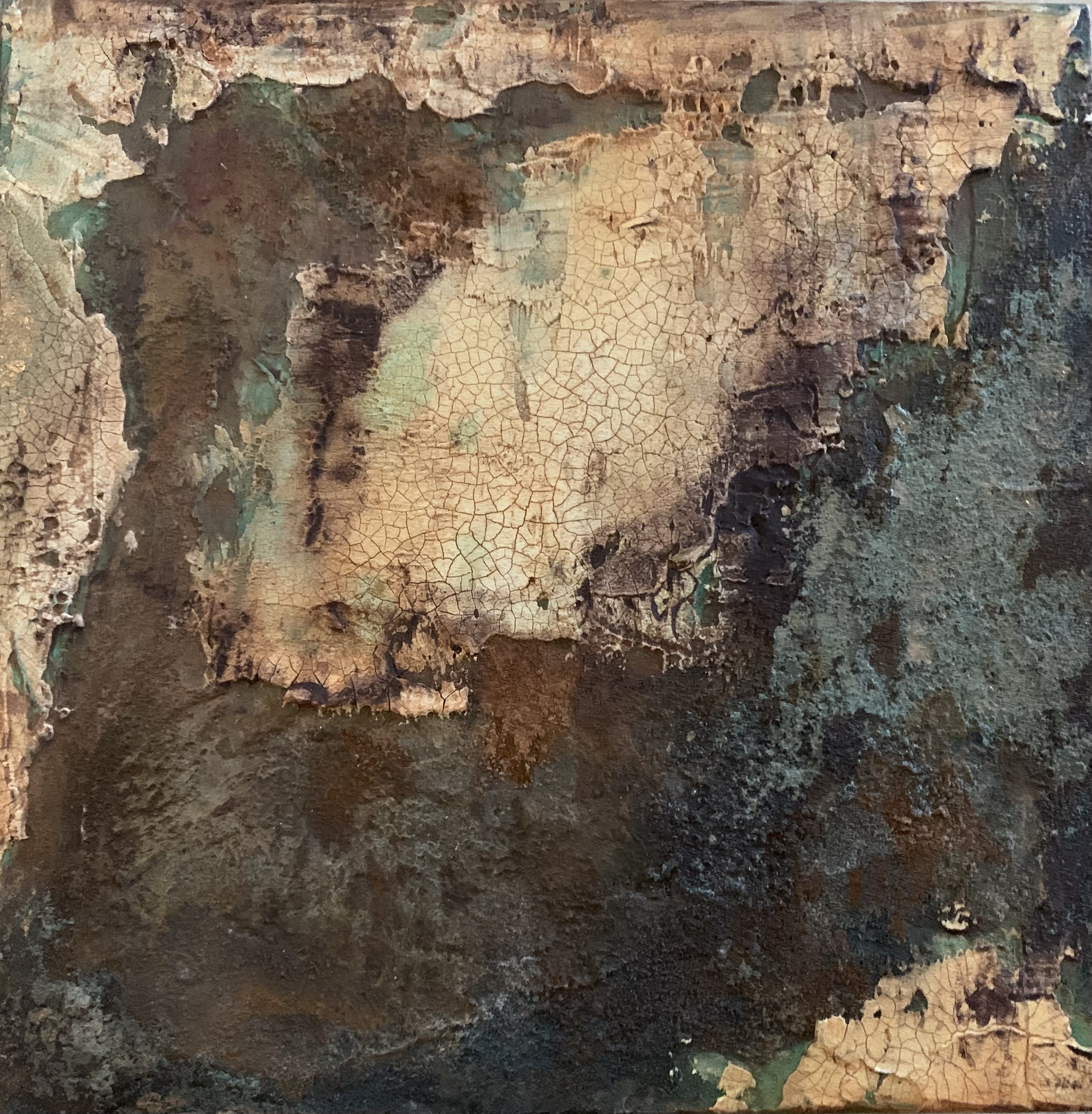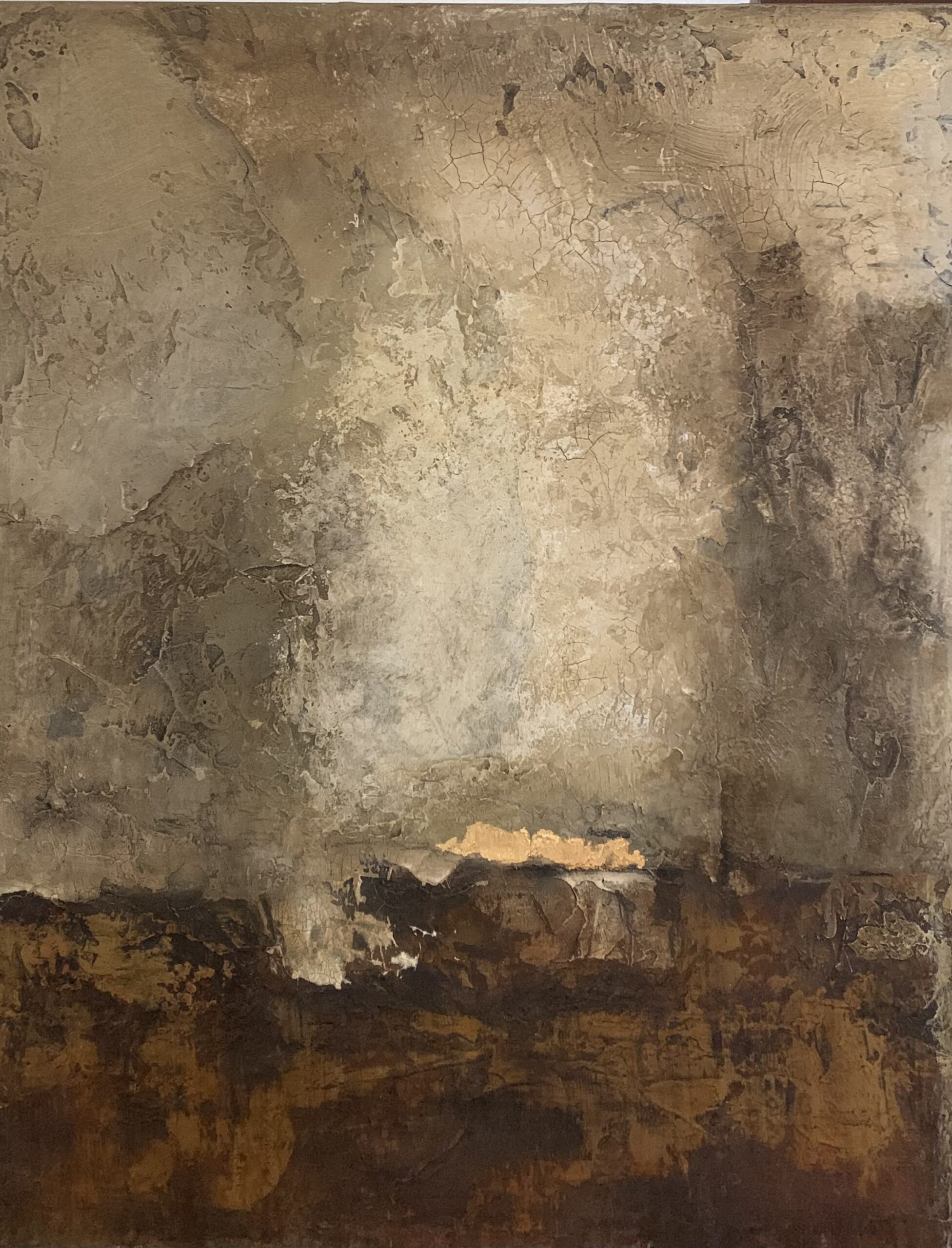 Andrea Raft’s work evokes the rawness of geology and the poetry of patina—art that feels unearthed rather than merely created. First trained at the Brentwood Art Center in Los Angeles, Andrea deepened her practice during a formative painting residency in Giglio, Italy. There, surrounded by ancient stone and seaside weathering, she fell in love with muted earth tones and organic textures, transforming her approach to composition and material.