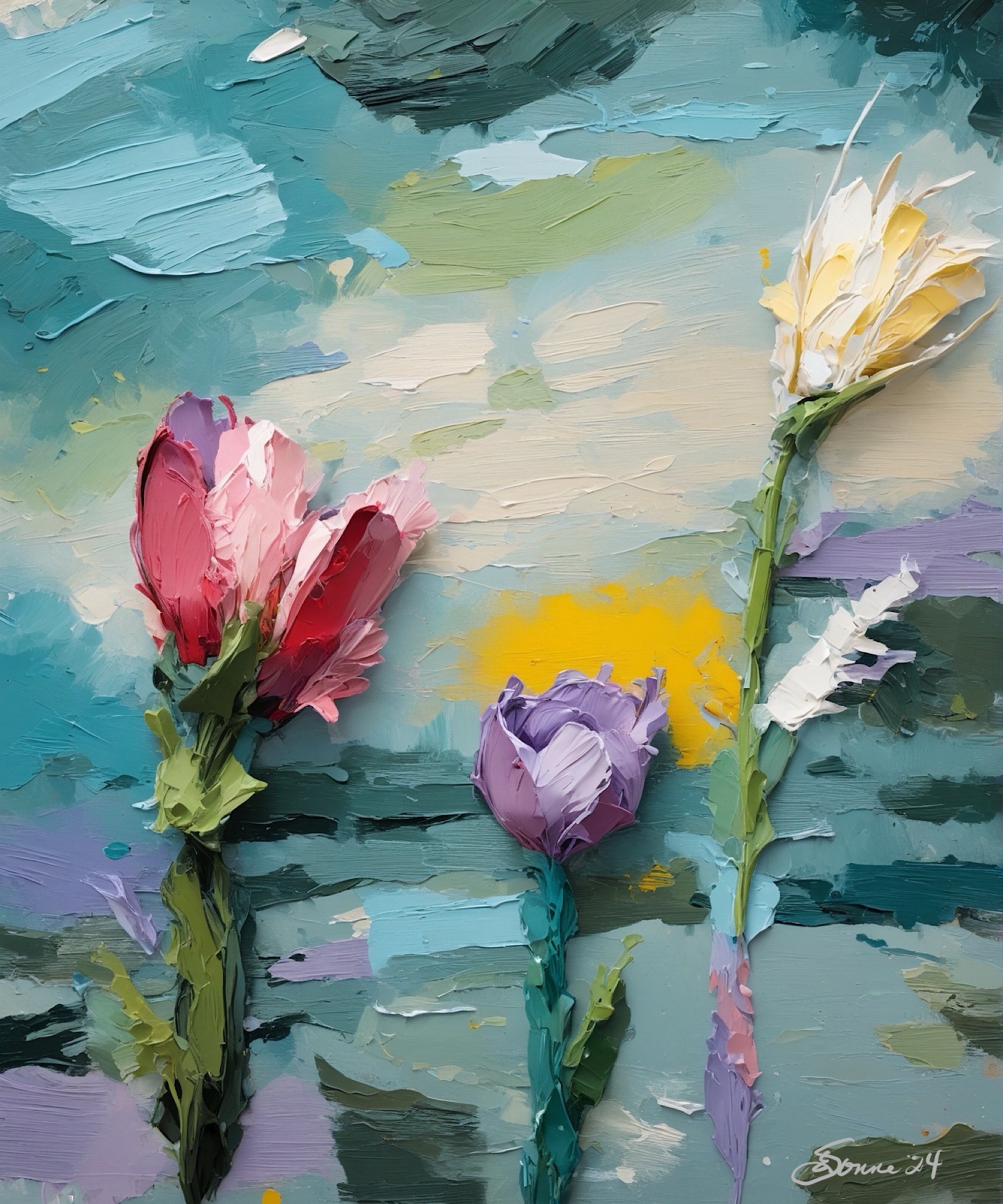 Elaine Sonne doesn’t paint inside the lines—she dissolves them. Her muse is Nature, an ever-generous source of inspiration that “never fails” her. Curiosity fuels her, rebellion shapes her, and convention bores her. As a self-taught artist, Elaine has traversed countless genres, pouring herself into hundreds—perhaps thousands—of workshops, classes, and painted-over canvases. Every layer of her artistic evolution tells a story of relentless exploration and intuitive growth.